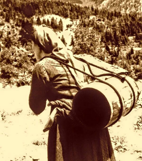 Κουβάλημα με ξύλινη βαρέλα νερού από βρύση. Η φωτογραφία είναι από το διαδίκτυο. Όταν βρεθεί κερτεζίτικη αντίστοιχη φωτογραφία, θα αντικατασταθεί.