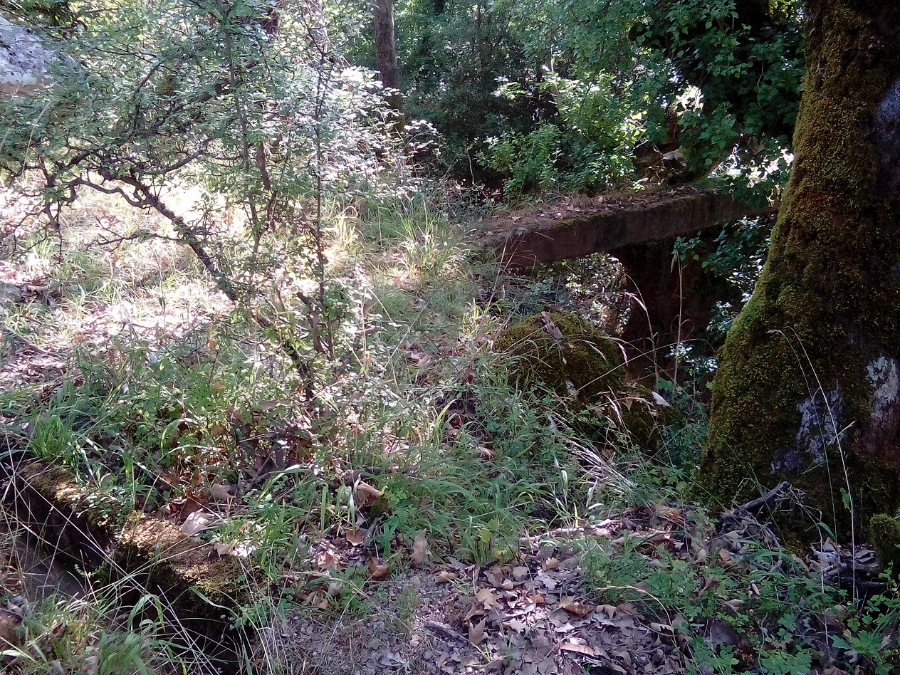 Το μονοπάτι αυτό, όπως σώζεται σήμερα, λίγο πριν την 1η δεξαμενή ύδρευσης στα Επάνω Αλώνια, η οποία φαίνεται στο βάθος. Αριστερά-νότια το οικοσύστημα πλατάνων, κλπ του παραπόταμου Λίθου. Ηφωτογραφία είναι του Αύγουστου 2015.